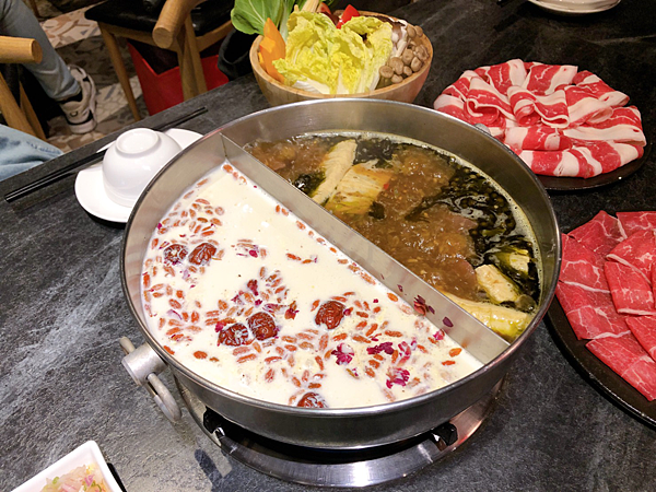 我這次選擇的 就是招牌的青重慶麻辣湯底跟牛奶鍋喔