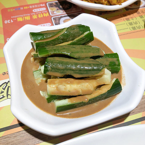 但林記海南雞飯的小黃瓜是搭配麻醬一起食用的