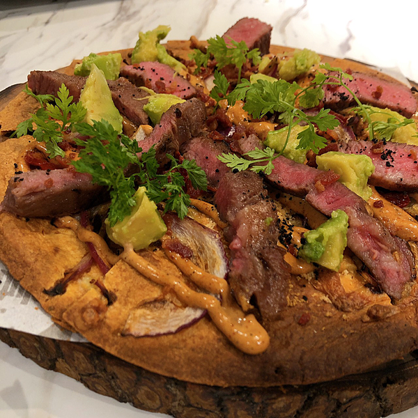 再來這道烤餅也是之後會上市的新品 坦杜里酪梨烤牛肉烤餅